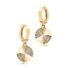 Radiate elegance with the sunrise dangling hoops from Luxbyx. Crafted from premium sterling silver and finished in a lustrous gold tone or silver tone , these hoops feature a captivating sunburst disc charm that catches the light with every move. The sleek, minimal hoop design paired with the radiant engraved pattern evokes the warmth and brilliance of a sunrise — perfect for both everyday sophistication and special occasions.