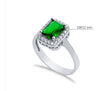 A refined statement ring featuring a vibrant rectangular emerald-green stone, framed by a delicate halo of sparkling zirconia.